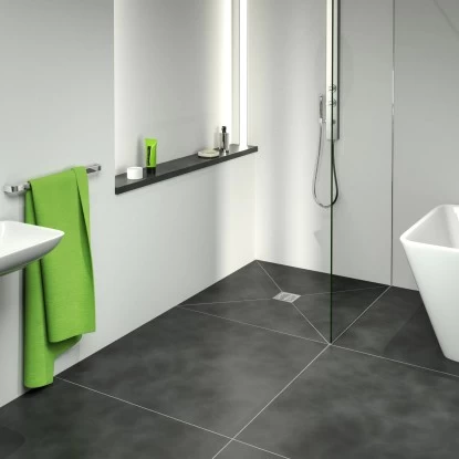 Das Duschelement ist gemäß der Montageanleitung individuell zuschneidbar und lässt sich somit perfekt anpassen. Der Duschplatz kann nach dem Einbau und dessen Abdichtung ganz nach eigenen Wünschen befliest werden und ist bei einer Fliesengröße von mindestens 100 x 100 mm sogar rollstuhlbefahrbar.