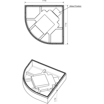 Maße Duschwannenträger (H x B x T): 17 cm x 77 cm x 77 cm