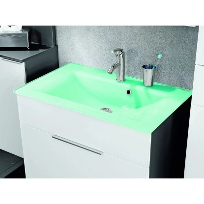 Ein extravagantes, stilvolles und großzügiges Glasbecken, passend zur ebenfalls im OBI Online-Shop erhältlichen Badmöbelserie Viora der Firma Fackelmman. Das Glasbecken ist 80 cm breit und weiß mit einer mintgrünen Farbgebung zu gefallen.