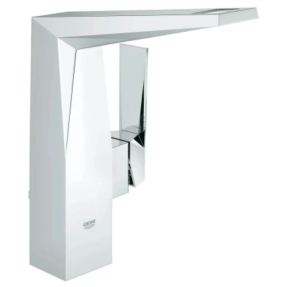 Die Grohe Allure Brilliant Waschtischarmatur verfügt über einen hohen Auslauf und eine Zugstangen-Ablaufgarnitur.