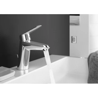 Diese Grohe Eurodisc Cosmopolitan Badarmatur mit Zugstange zum Öffnen und Schließen des Ablaufs bringt formschönes Design und höchste Funktionalität in perfekten Einklang. So fällt als erstes ihre glänzende Grohe StarLight Chromoberfläche auf, die auch nach Jahren noch aussieht wie am ersten Tag. Für normalgroße Waschbecken ideal, hat der Standard-Auslauf genau die richtige Höhe zum Zähneputzen oder Händewaschen. Dabei regulieren Sie Temperatur und Menge des Wassers mit Grohe SilkMove leichtgängig und stufenlos. Ebenso einfach, wie sich der Einhandmischer bedienen lässt, ist er auch montiert und dank Grohe QuickFix Plus geht das durch weniger Teile ganz schnell. Lassen Sie sich verwöhnen – von Grohe Eurodisc Cosmopolitan.