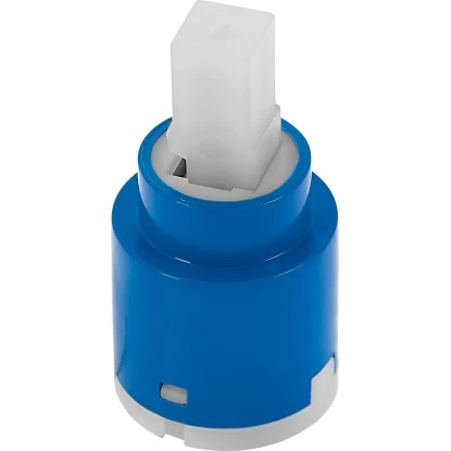 Die Keramikkartusche eignet sich zur Regelung von Durchflussmenge und Temperatur. Sie wird als Ersatzteil für Einhebelarmaturen verwendet und ist einsetzbar für die Serie Cabras. Als Außenmaterial dient Kunststoff, während die Dichtscheiben aus Keramik bestehen.