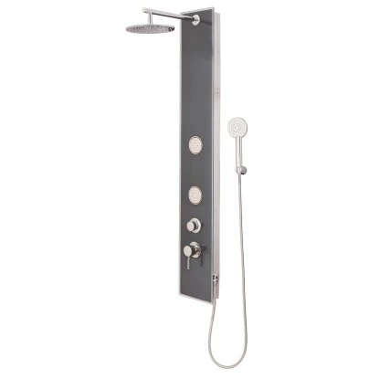 Das Schütte Duschpaneel Ibiza überzeugt durch sein modernes Design und besteht aus Glas in Anthrazit.