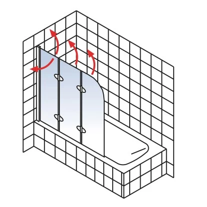 Mit diesem modernen Badewannenaufsatz können Sie Ihre Wanne in eine Dusche verwandeln. Bei Bedarf werden die drei Echtglaselemente (ESG) mit einer Stärke von 5 mm mühelos ausgeklappt und schon kann geduscht werden, ohne dass Wasser im gesamten Badbereich verteilt wird.