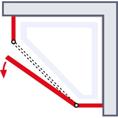 Diese Fünfeckdusche mit Drehtür der Serie Alexa Style 2.0 von Schulte überzeugt mit drei großflächigen Echtglasscheiben (ESG), von denen zwei feststehend sind. Die nach außen öffnende Drehtür ist mit einem schönen Aluminiumprofil an diesem Seitenteil befestigt. So entsteht ein großzügiger Einstieg in die Fünfeckdusche.